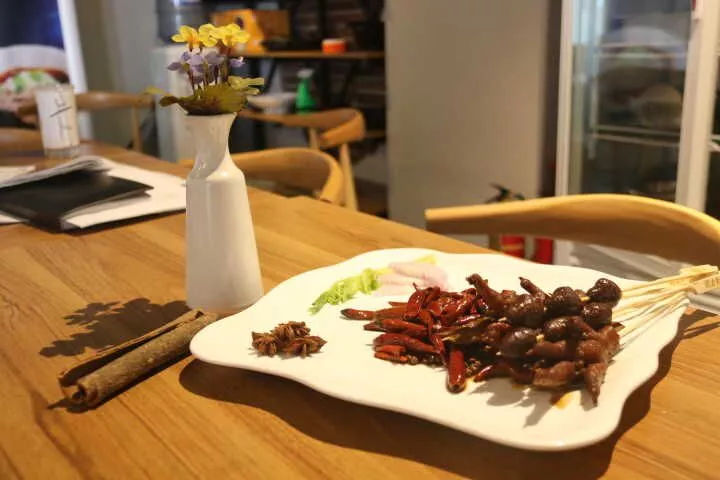 菜品在特珠殊加工后用簽串制,